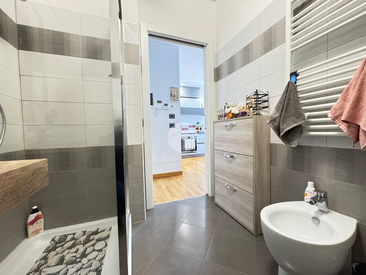 Viale Ugo Monaco - Fonte Laurentina Proponiamo in vendita bilocale completamente ristrutturato, ubicato in un comprensorio di recente costruzione e di ultima generazione. L'immobile internamente si compone di ingresso, soggiorno con angolo cottura, camera da letto matrimoniale, bagno ed un terrazzo servito da armadiature in alluminio in tinta e su misura. La soluzione verrà ceduta completa di mobilio, sono presenti climatizzatori nella zona giorno e nella zona notte, porte scorrevoli, cucina su misura completa di elettrodomestici, infissi doppio vetro taglio termico in pvc e caldaia a condensazione. Il piano alto e l'esposizione a Sud rendono l'appartamento molto luminoso. Lo stabile in cui è ubicata la soluzione è dotato di pannelli solari ed è in classe energetica A3. Completa la proprietà un ampio posto auto coperto in rimessa condominiale. La zona è servita da tutti i principali servizi tra cui: scuole, locali commerciali e linee autobus.